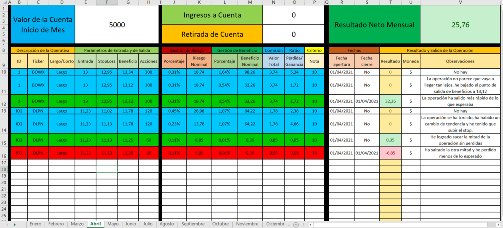 Diario de Trading de Acciones en Excel